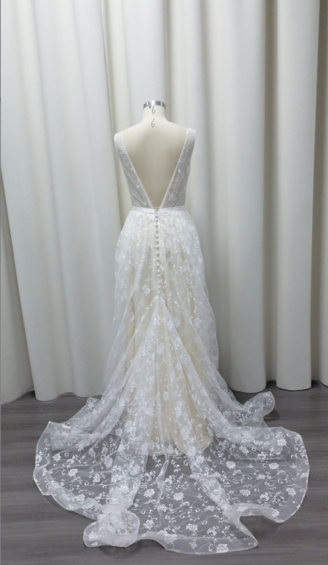The dress arrived today and it's just breathtaking. The sweep train is elegant and the appliques lace is exquisite. A perfect wedding dress!