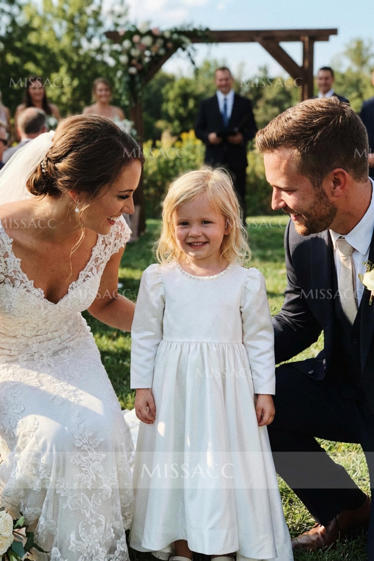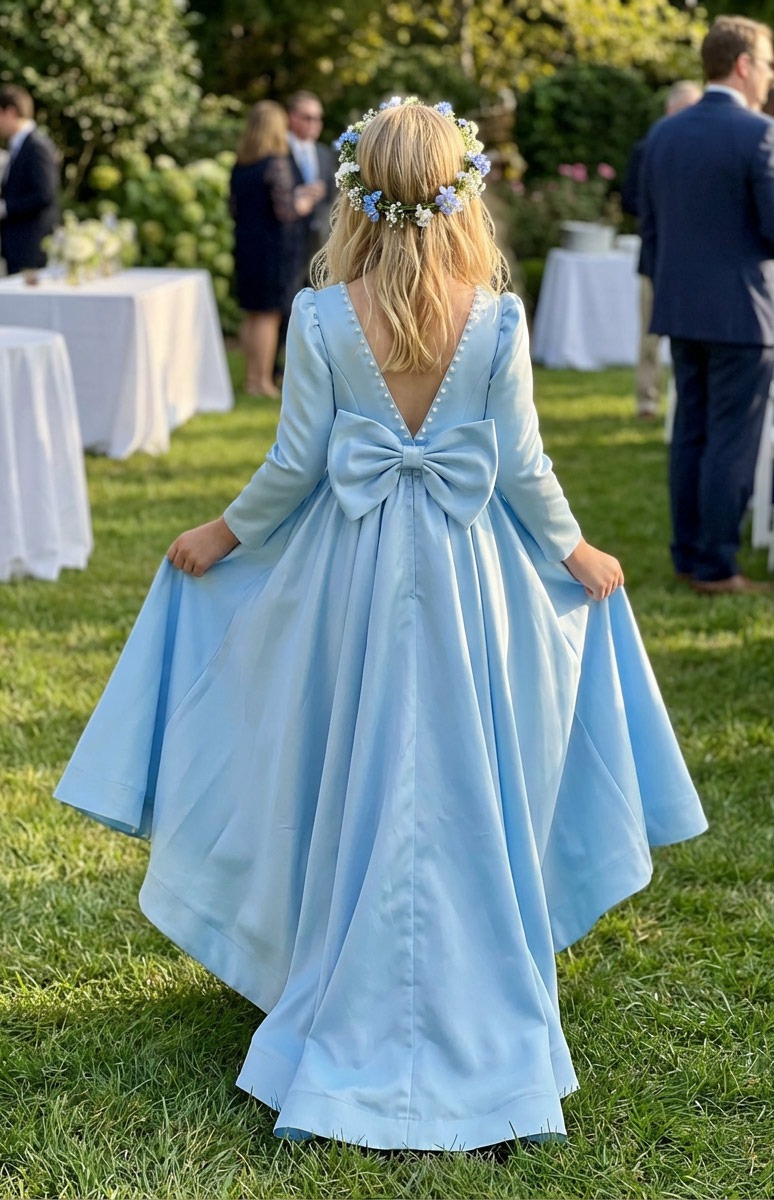 I was honestly a bit nervous buying a dress online for my niece's big moment as a flower girl, but this satin dress turned out surprisingly well. The fabric feels nice and heavy, not cheap or flimsy like some others I've seen. The 3/4 sleeves were perfect for an outdoor fall wedding since it was a little breezy. We did have to steam it quite a bit right out of the bag to get the wrinkles out, but once that was done, she looked absolutely adorable twirling around. Definitely a solid choice for the price.