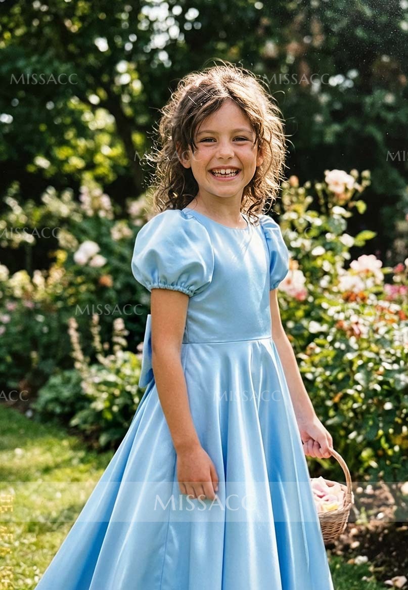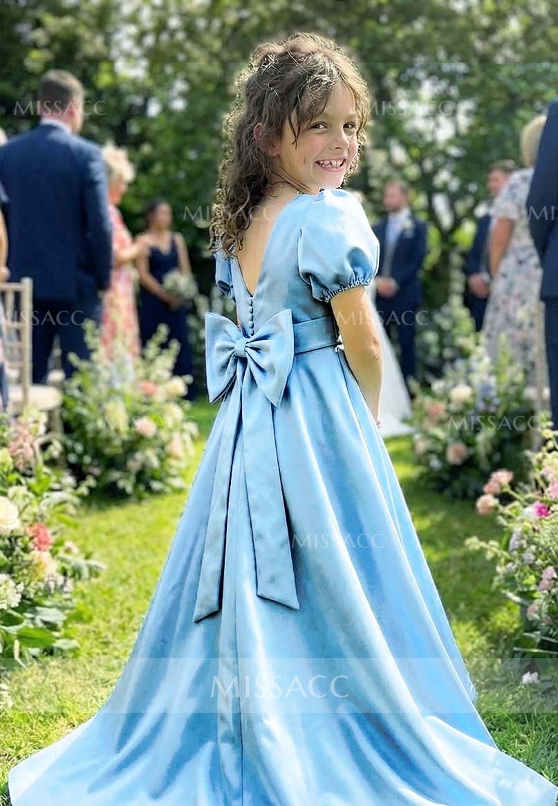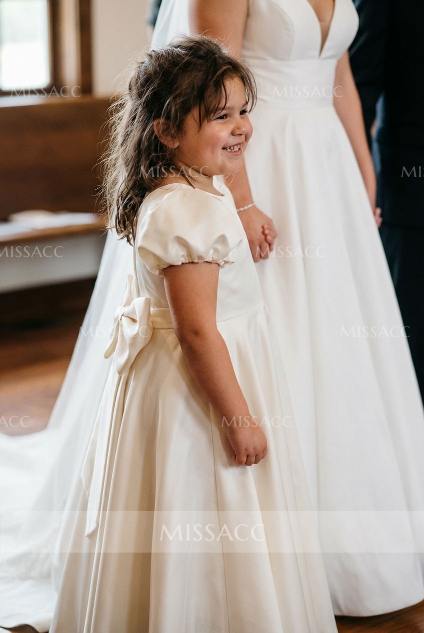 The round neckline and short sleeves offer a classic touch, while the bow detail adds a playful yet elegant touch, perfect for special occasions. Ideal for flower girls, this dress makes a statement at weddings and formal events. Let your baby shine with confidence in this elegant suit.