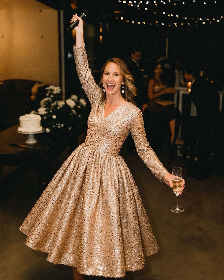 This sparkly dress was a total hit at my friend's holiday party. The long sleeves kept me warm enough without needing a jacket, and the length is just right for dancing. I was worried about the sequins scratching, but it’s actually lined really well.