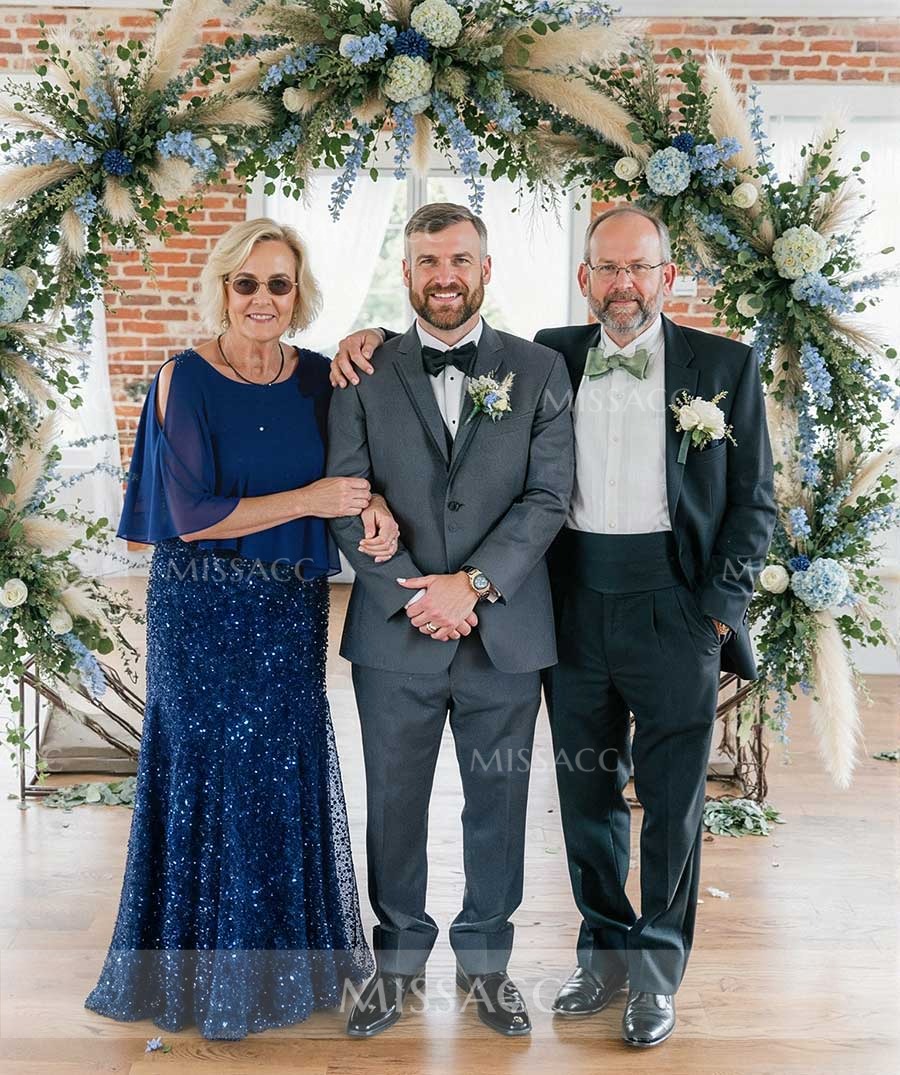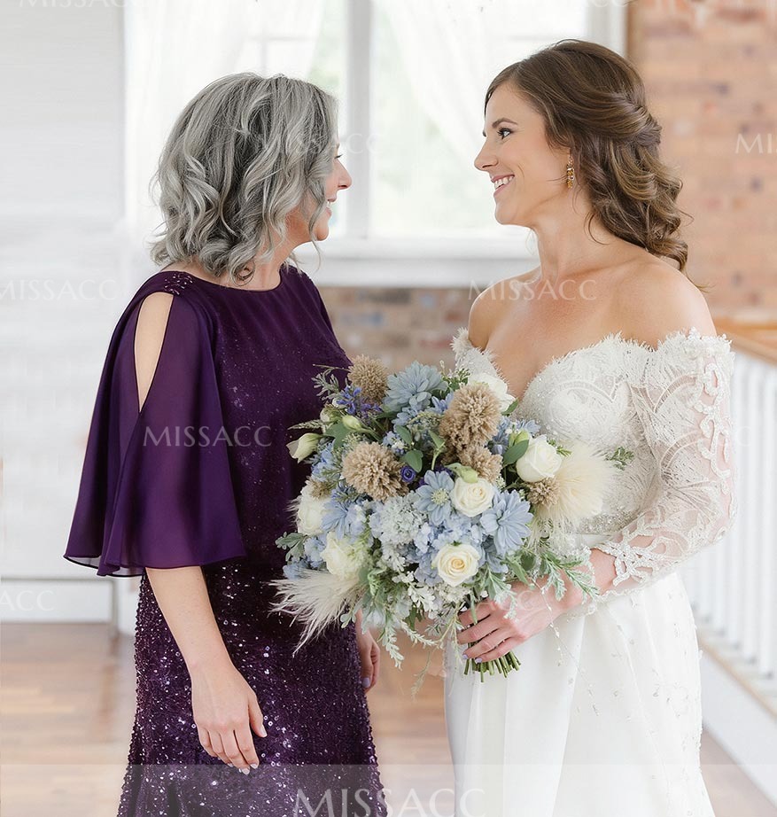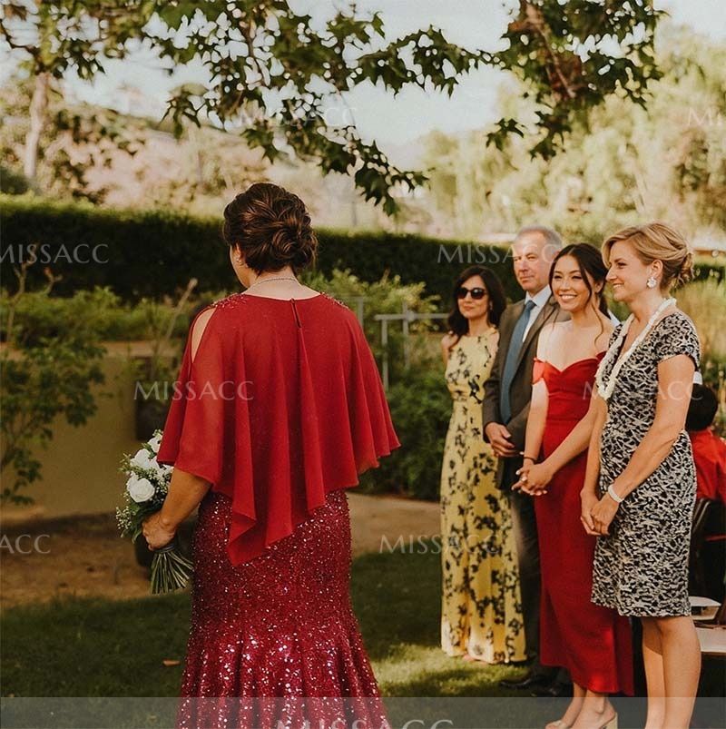 This stunning chiffon beaded bridal gown is perfect for memorable moments. Crafted from a luxurious chiffon fabric, this gown drapes elegantly and accentuates the beautiful figure. Sequin beading adds a touch of glamor and ensures that the gorgeous image of the mother of the bride shines in the light.