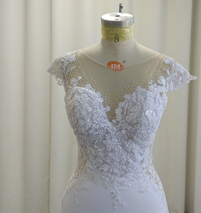 Could you show me a close-up of the lace fabric and the back of the dress?