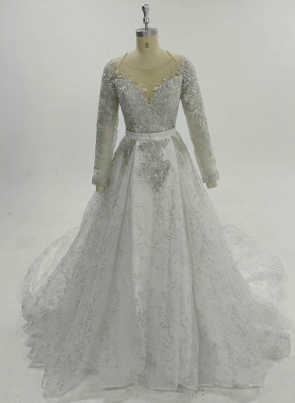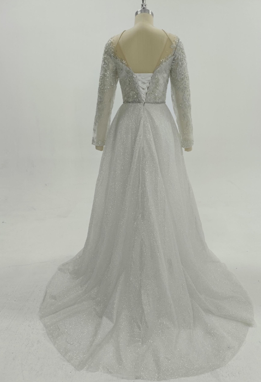 Luxury Illusion Neck Long Sleeves A-Line Detachable Satin/Tulle With Beading/Sequins #SWD12698