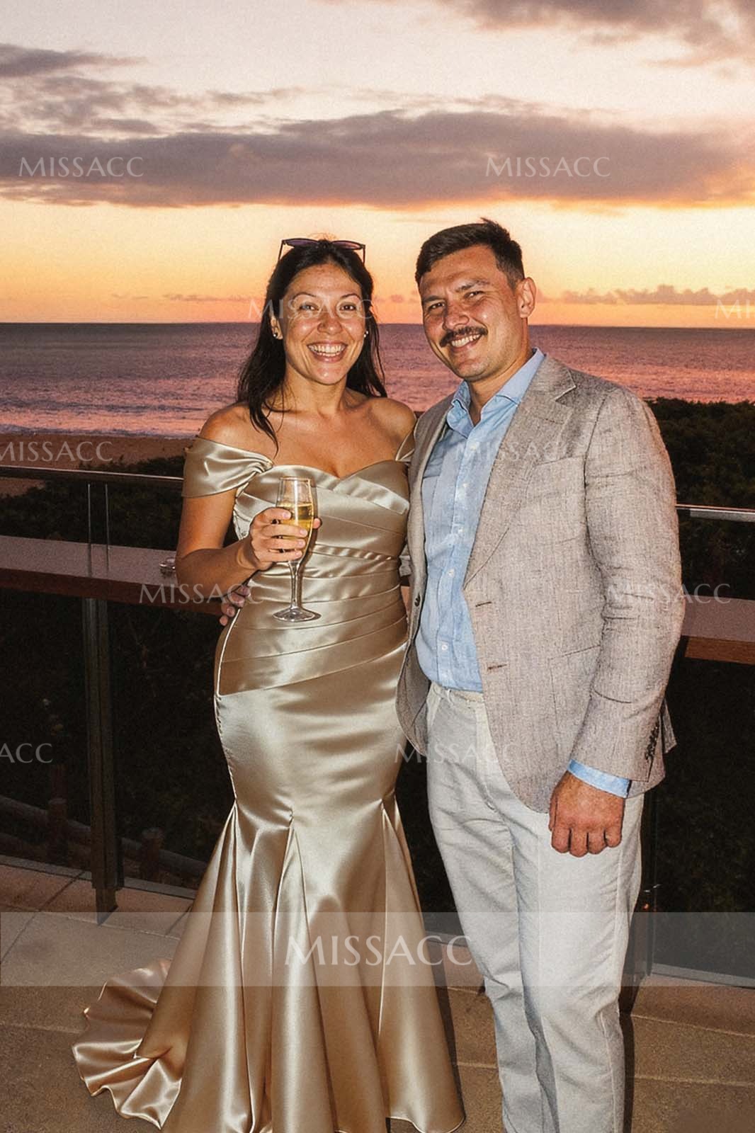 I was worried a satin mermaid gown would feel stiff, but the Satin that makes it surprisingly comfortable and easy to move in! Crucially, the flare on the tail isn't restrictive, so you can actually walk and dance. The Champagne Gold color is beyond elegant for a formal evening event or wedding guest look. It captured the sunset colors perfectly. This is the definition of glamour meeting comfort—10/10, would recommend for any destination formal event.