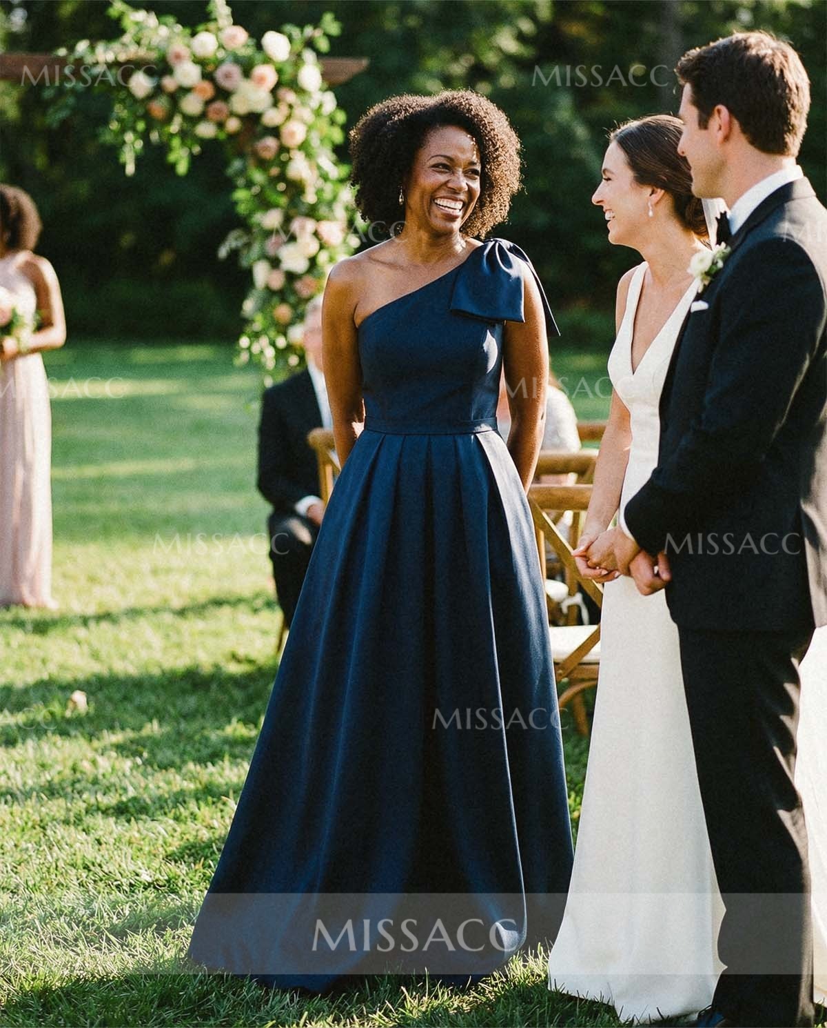 For an unforgettable look, opt for our one-shoulder A-line bow evening dress, a piece that is both timeless and trend-setting. Crafted from a luxurious fabric, this dress features a chic one-shoulder design that accentuates the silhouette, while the bow detail adds a touch of elegance. The lightweight train exudes elegance and is ideal for red carpet events or formal dinners.