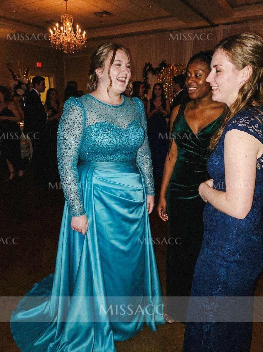 Fantasize a night of eloquent style and poise at your special event in this prom dress. This sleeveless style showcases a pleated bodice and halter plunging v-neckline that exudes elegance. It is crafted from luxurious charmeuse, and the backless design lets you show a glance of skin. An asymmetrical wide band effortlessly defines your waist for a cinched-in look. The sheath skirt accentuates your natural curves and streams to the sweeping train, finished off with a thigh-high leg slit and dramatic side overskirt. You will be envied in an unbeatable gown from this prom dress.