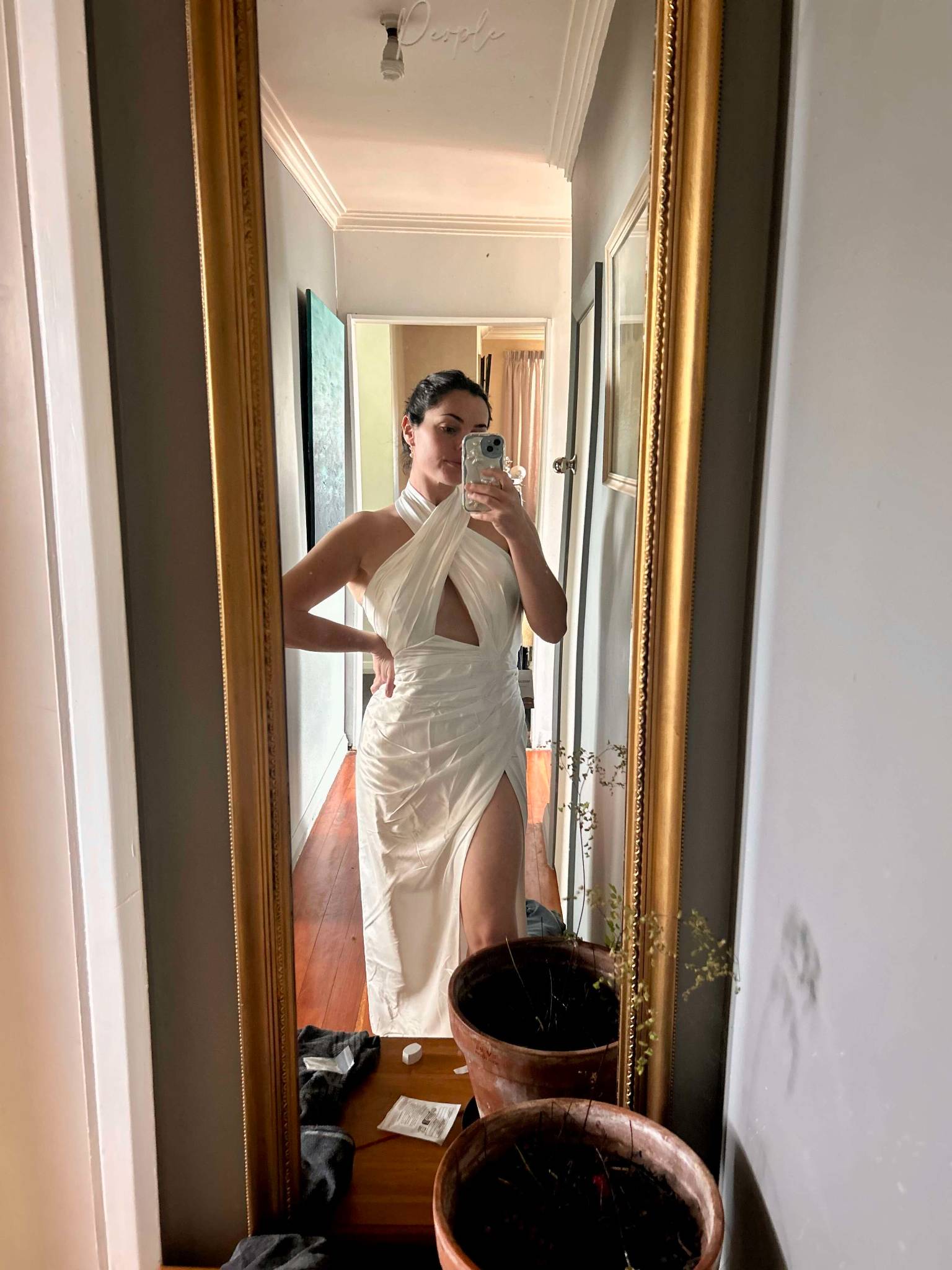 I was surprised by how well this dress fit me. The size was perfect and the satin material was smooth and soft. Would definitely recommend for any special occasion.