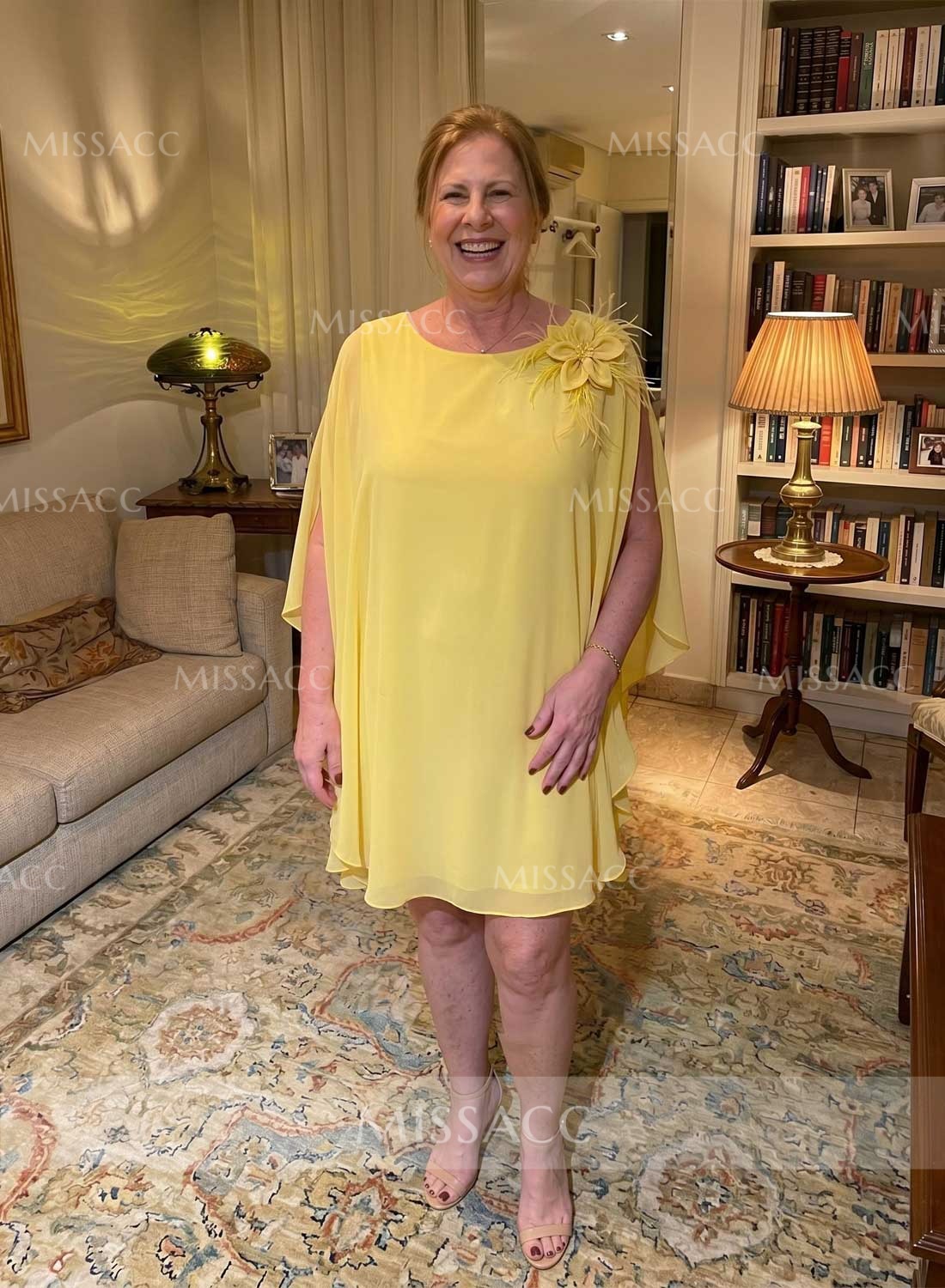 I wore this to my daughter's outdoor wedding and felt absolutely wonderful. The flowy cape design is incredibly flattering and hid my arms perfectly without feeling heavy. It was so comfortable to wear for the entire event. Highly recommend it!🥰