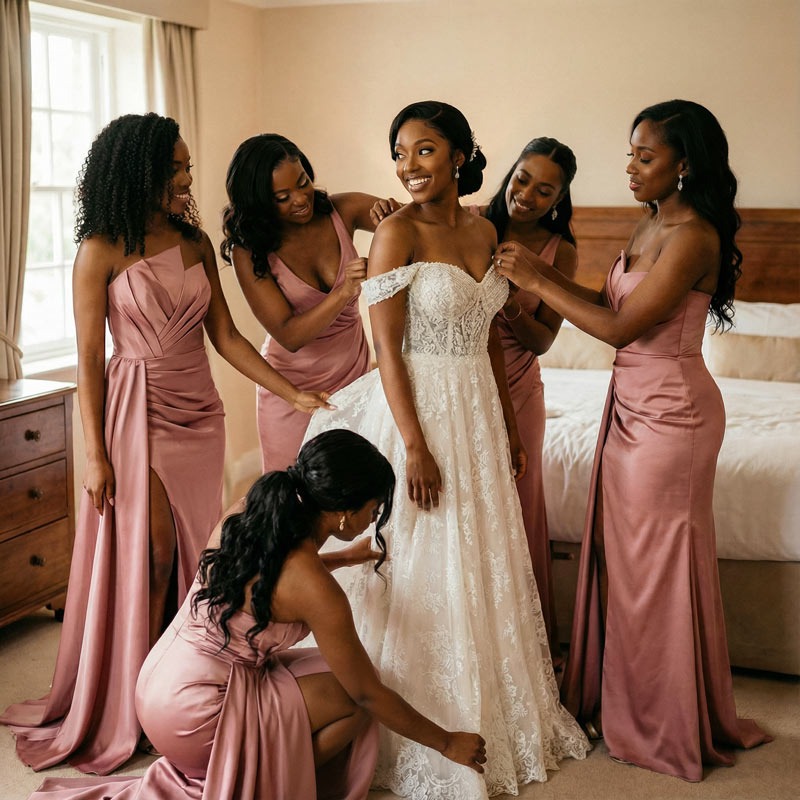 I was honestly a bit nervous about ordering a bridesmaid dress online for my best friend's wedding, but this satin gown turned out amazing. We had an outdoor ceremony in a garden, and the fabric was light enough that I wasn't sweating to death, but still looked super elegant. The high split made walking on the grass way easier than I expected. I did have to get the hem taken up a little bit since I'm short, but otherwise, it fit like a glove right out of the bag.