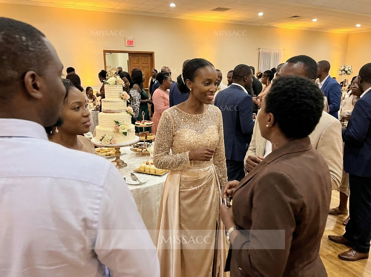 Wearing the sparkly gown, make a dramatic arrival. This stunning piece, made from silk like satin, features a scoop neckline. The waist is accentuated and slimmed down by the overskirt train, producing an incredibly attractive silhouette. This dress radiates charm and elegance , making it an unforgettable presence at any special event. With this carefully thought-out ensemble, which perfectly balances refinement and modern allure in a glamorous yet graceful manner, you can elevate your look.